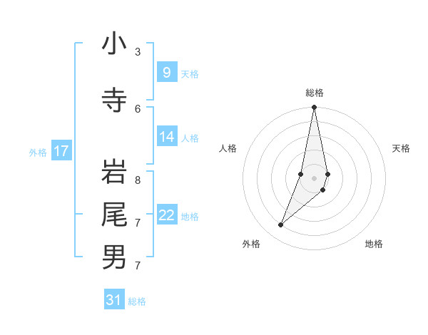小寺 岩尾男さんの総格は31画の5点!