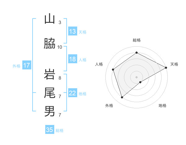 山脇 岩尾男さんを姓名の画数から五運を鑑定