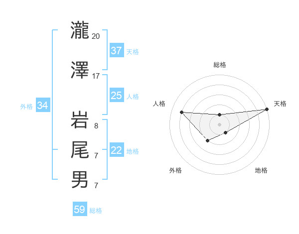 瀧澤 岩尾男さんを姓名の画数から五運を鑑定