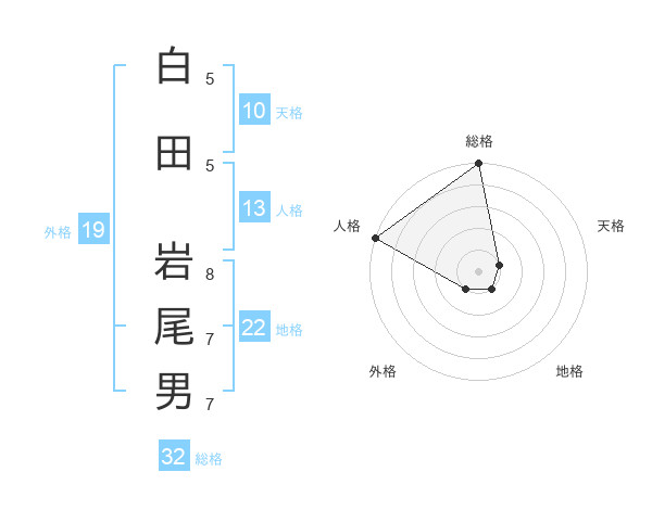 白田 岩尾男さんの総格は32画の5点!