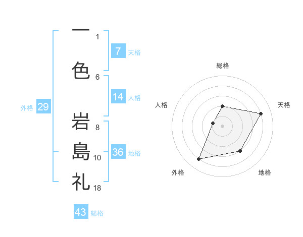 一色 岩島礼さんの総格は43画の2点