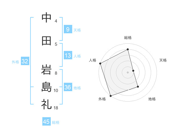 中田 岩島礼さんを姓名の画数から五運を鑑定