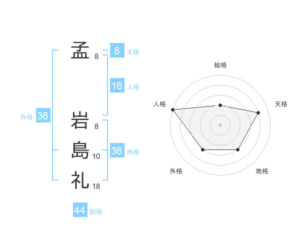 孟 岩島礼さんを姓名の画数から五運を鑑定