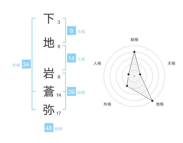 下地 岩蒼弥さんを姓名の画数から五運を鑑定