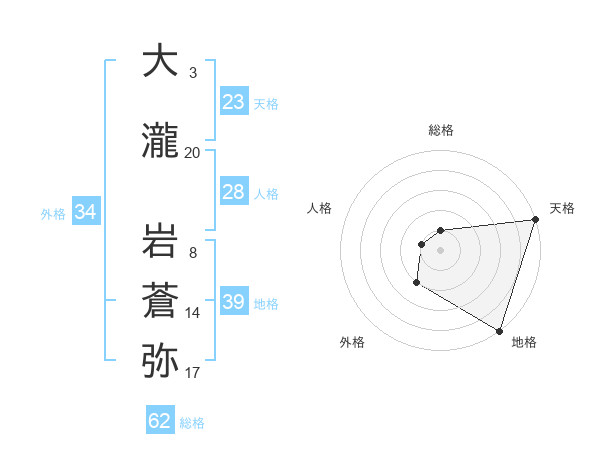 大瀧 岩蒼弥さんを姓名の画数から五運を鑑定