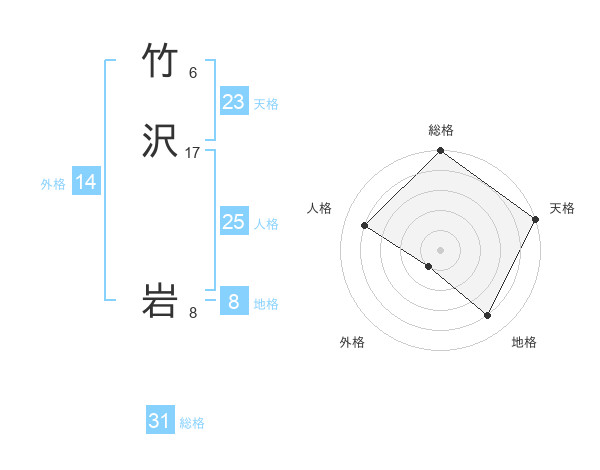 竹沢 岩さんの総格は31画の5点!