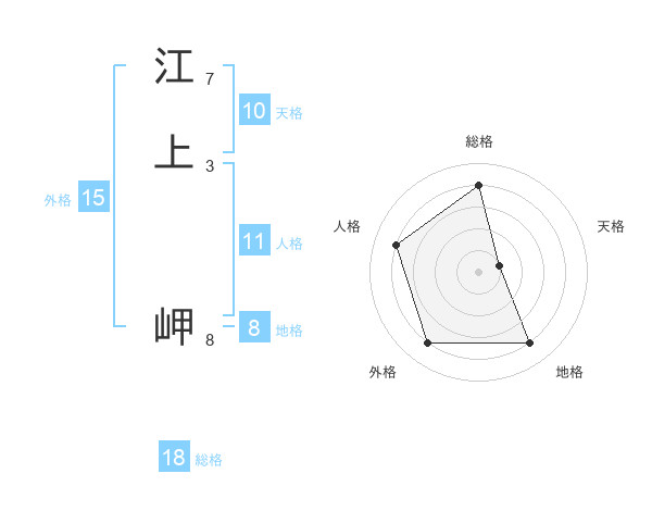 江上 岬さんの総格は18画の4点!