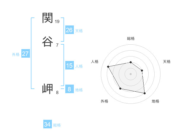 関谷 岬さんの総格は34画の2点!