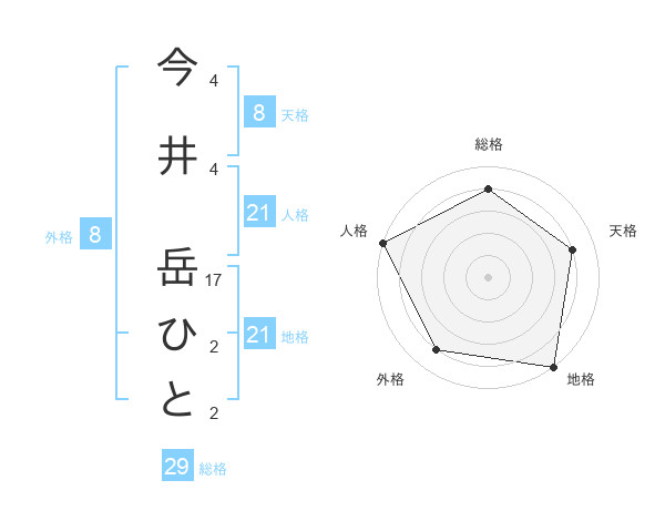 今井 岳ひとさんを姓名の画数から五運を鑑定
