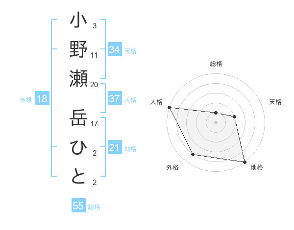 小野瀬 岳ひとさんを姓名の画数から五運を鑑定