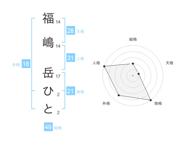 福嶋 岳ひとさんの地格は21画の5点!