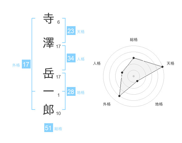 寺澤 岳一郎さんの総格は51画の3点!