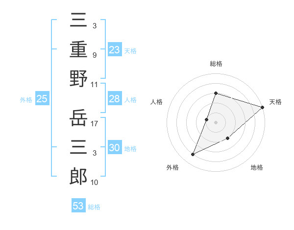 三重野 岳三郎さんを姓名の画数から五運を鑑定