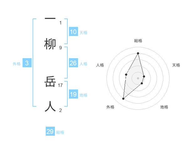 一柳 岳人さんを姓名の画数から五運を鑑定