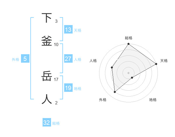 下釜 岳人さんを姓名の画数から五運を鑑定