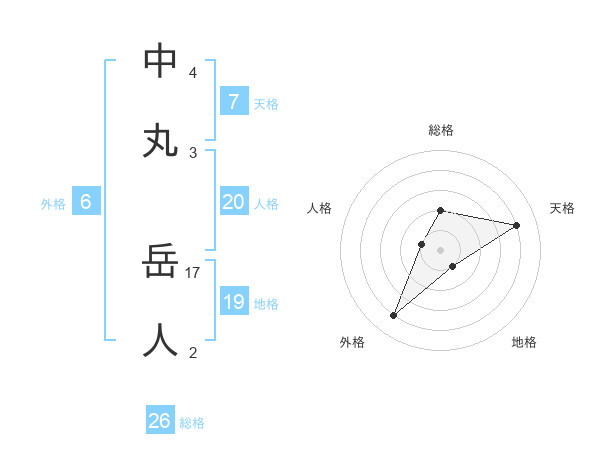 中丸 岳人さんの総格は26画の2点!