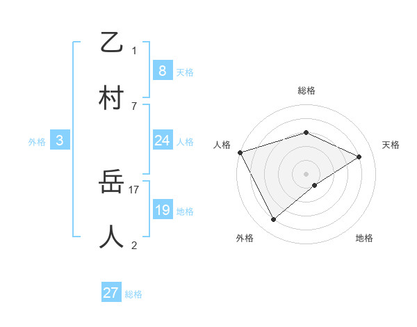 乙村 岳人さんの総格は27画の3点!