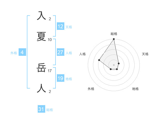 入夏 岳人さんの総格は31画の5点!