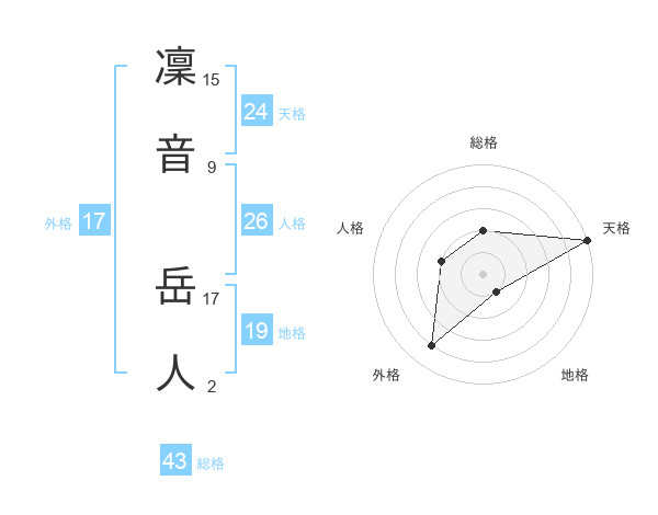 凜音 岳人さんの総格は43画の2点!