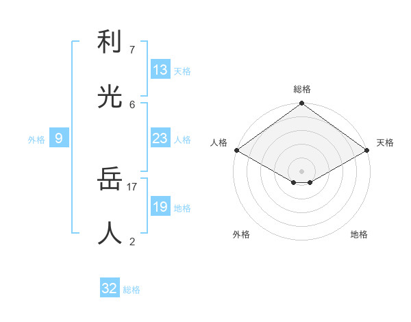 利光 岳人さんの総格は32画の5点!