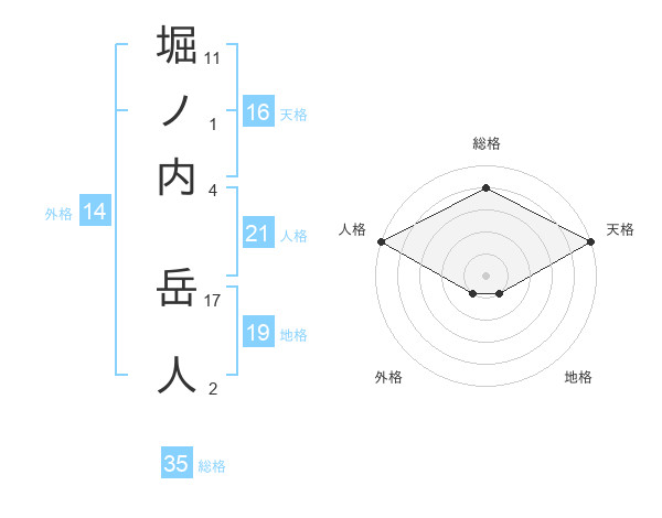 堀ノ内 岳人さんの総格は35画の4点!