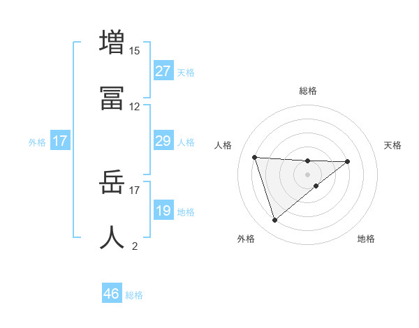 増冨 岳人さんを姓名の画数から五運を鑑定