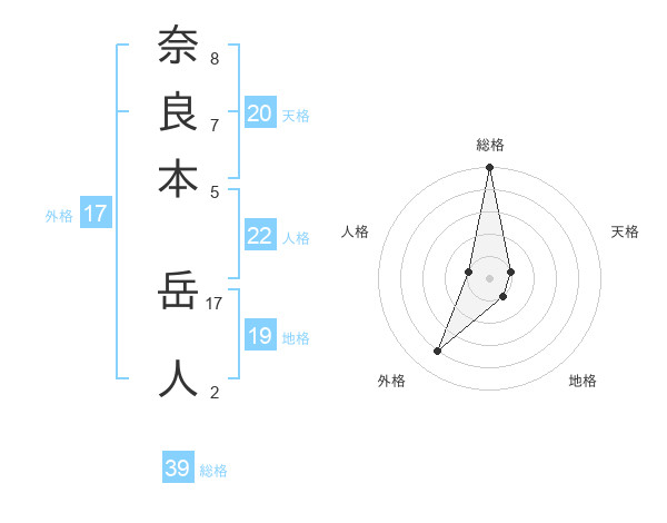 奈良本 岳人さんを姓名の画数から五運を鑑定