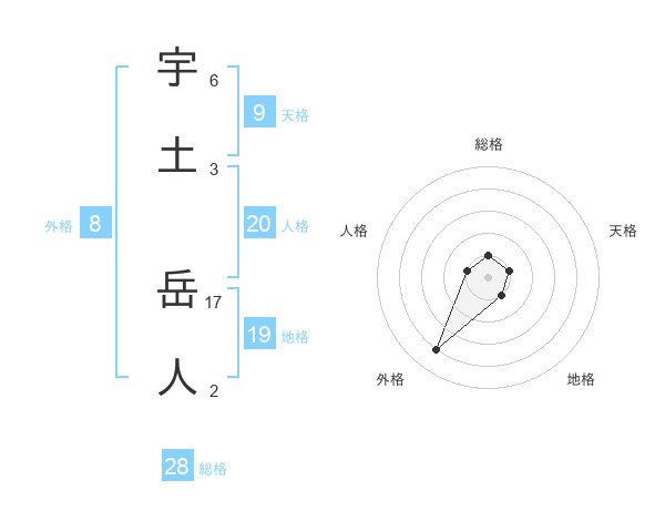 宇土 岳人さんの総格は28画の1点!