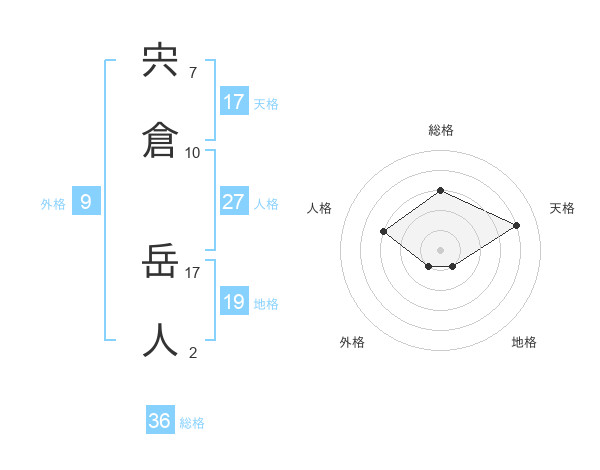 宍倉 岳人さんの総格は36画の3点!