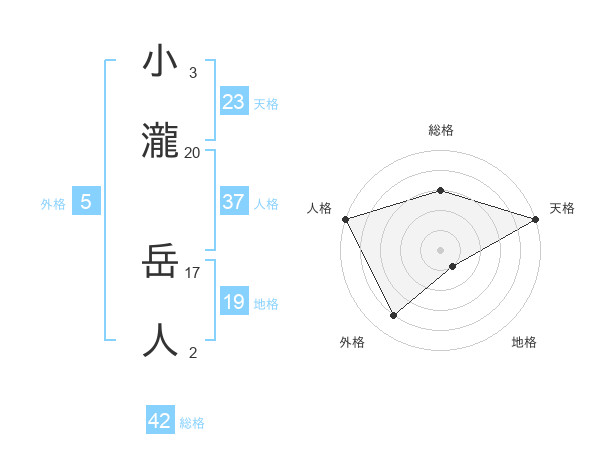 小瀧 岳人さんの外格は5画の4点!