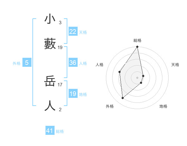 小藪 岳人さんの天格は22画の1点!
