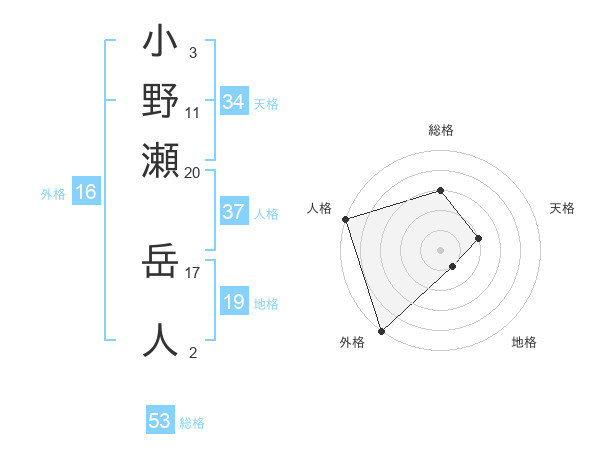小野瀬 岳人さんを姓名の画数から五運を鑑定