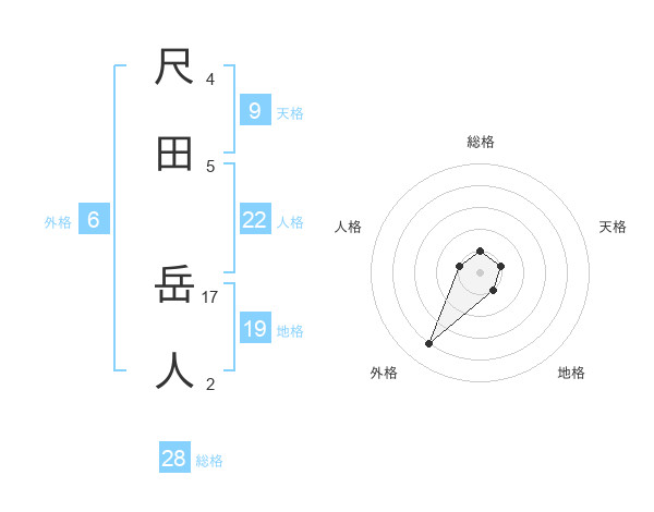 尺田 岳人さんの総格は28画の1点!