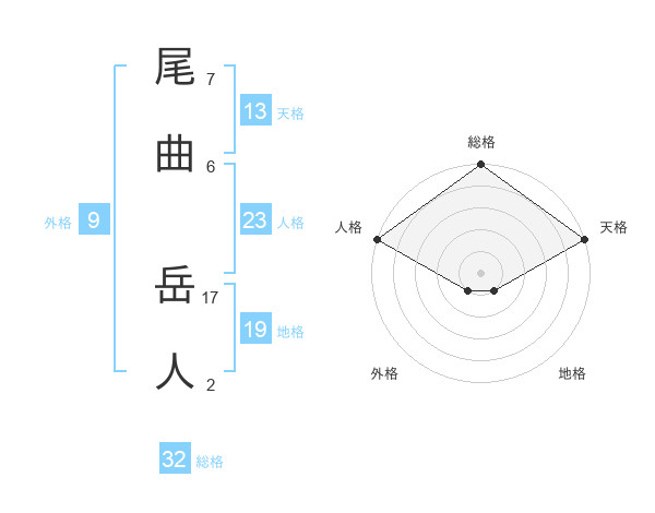 尾曲 岳人さんを姓名の画数から五運を鑑定