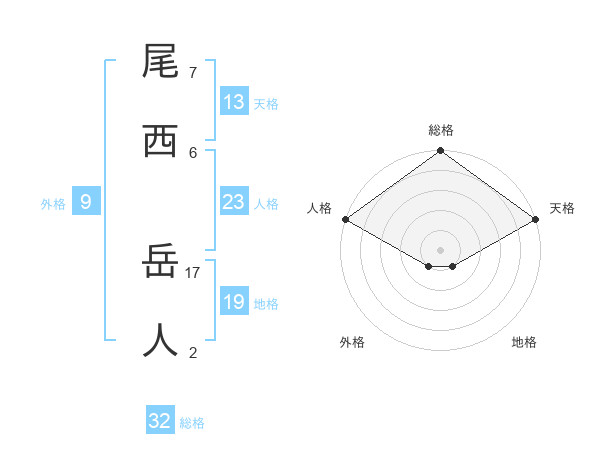 尾西 岳人さんを姓名の画数から五運を鑑定