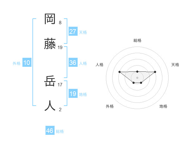 岡藤 岳人さんを姓名の画数から五運を鑑定