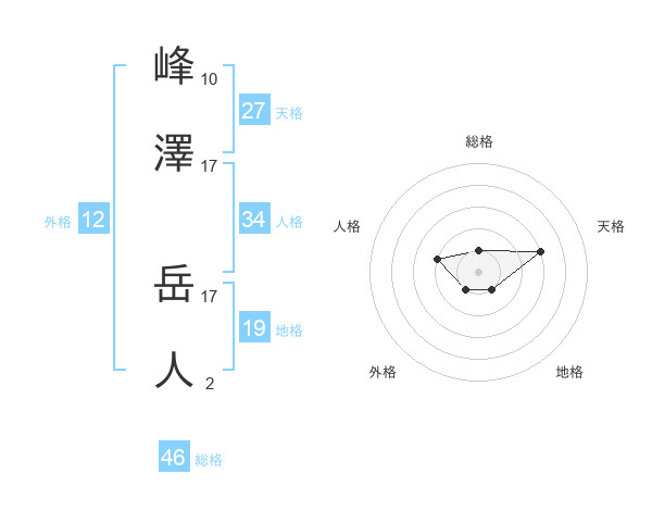 峰澤 岳人さんの総格は46画の1点!