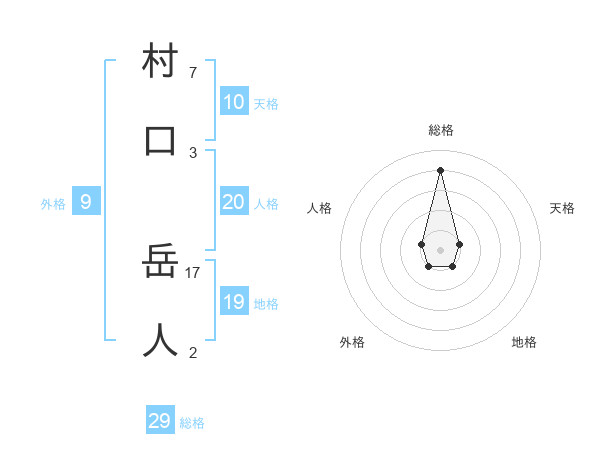 村口 岳人さんの総格は29画の4点!