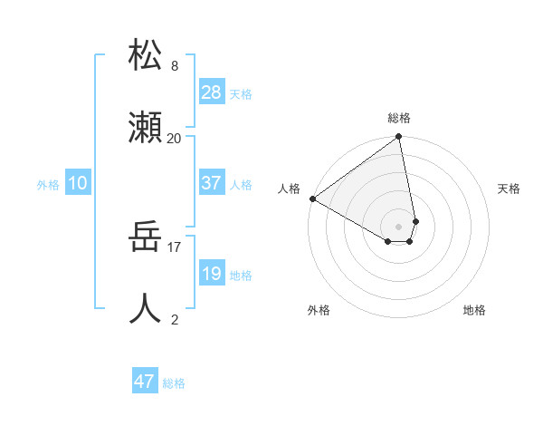松瀬 岳人さんの総格は47画の5点!
