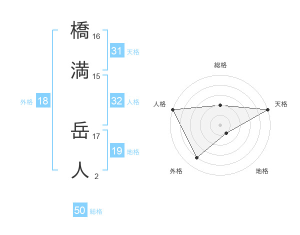 橋満 岳人さんを姓名の画数から五運を鑑定