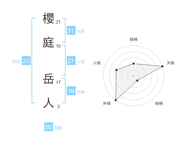 櫻庭 岳人さんの天格は31画の5点!