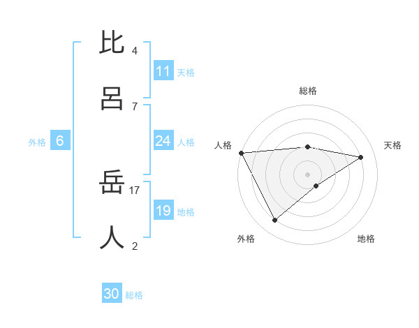比呂 岳人さんを姓名の画数から五運を鑑定