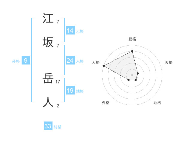 江坂 岳人さんの総格は33画の4点!
