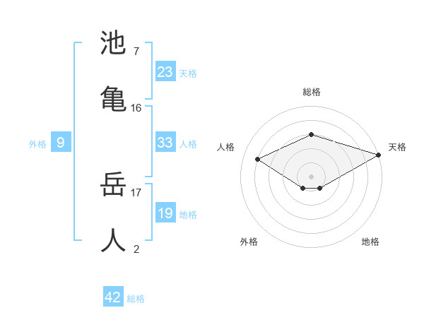 池亀 岳人さんを姓名の画数から五運を鑑定