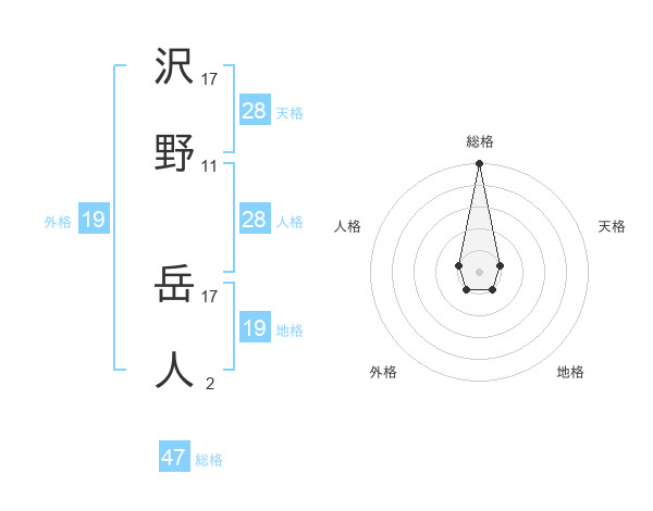 沢野 岳人さんの総格は47画の5点!