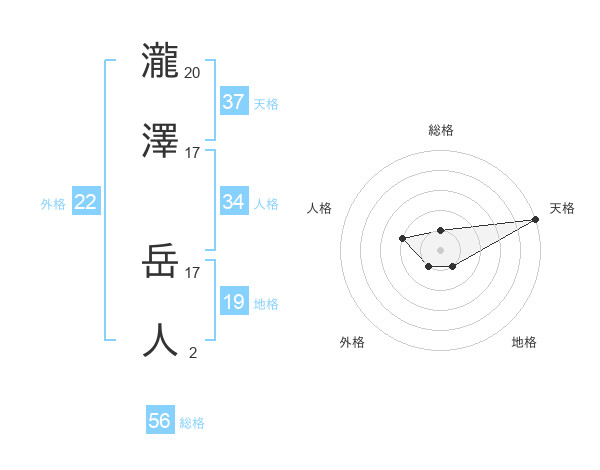 瀧澤 岳人さんを姓名の画数から五運を鑑定