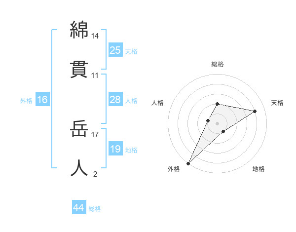 綿貫 岳人さんを姓名の画数から五運を鑑定