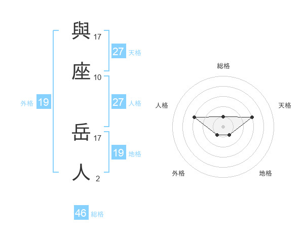 與座 岳人さんの総格は46画の1点!