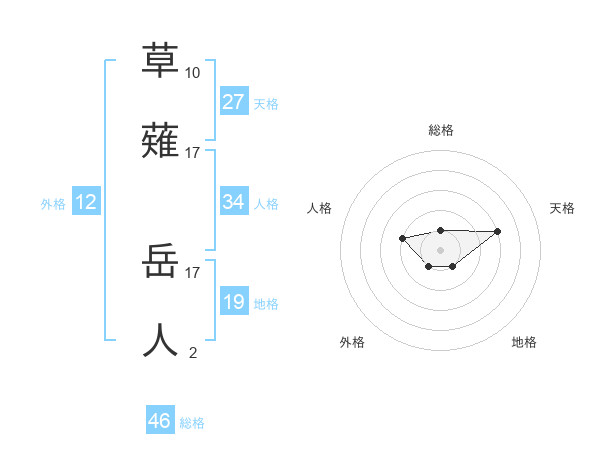 草薙 岳人さんを姓名の画数から五運を鑑定
