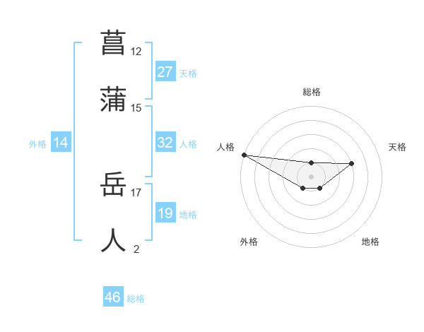 菖蒲 岳人さんの総格は46画の1点!
